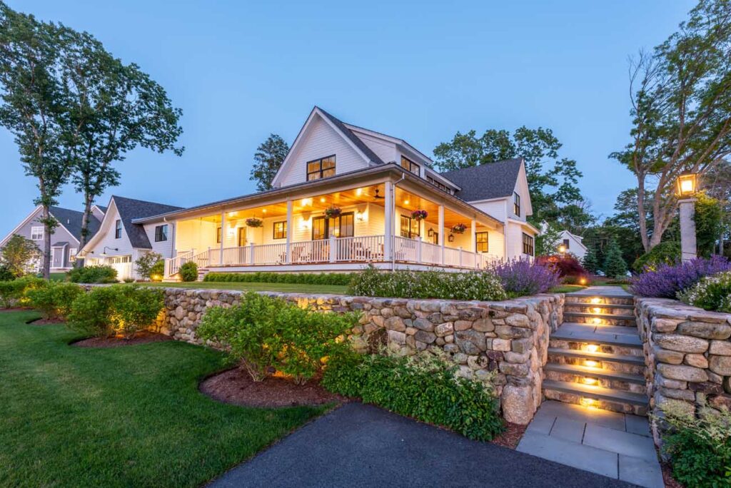 Corliss Landscaping designed and installed this elegant bluestone terrace in North Reading, MA, combining timeless hardscape design with lush, custom landscape plantings. The smooth bluestone surface offers a durable, low-maintenance patio installation ideal for outdoor dining, relaxing, and entertaining.